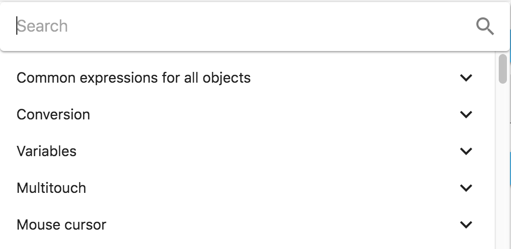 Cuando hace clic en el icono azul, puede buscar todas las expresiones disponibles ordenadas en categorías.