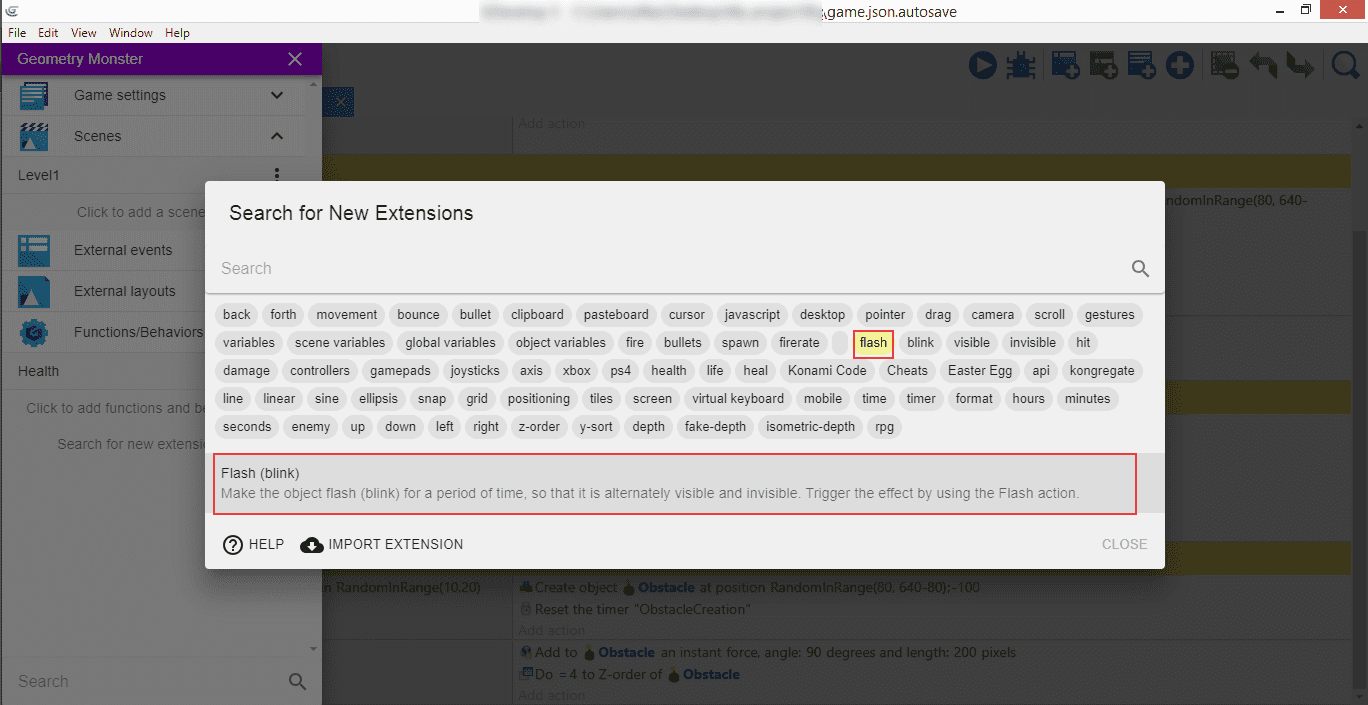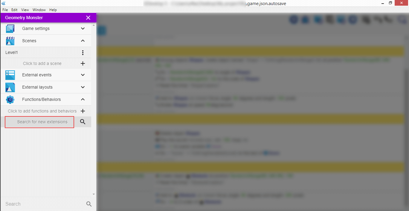 Saviez-vous que les extensions sont également faites d'événements ? Vous pouvez inspecter la façon dont elles sont construites et fonctionnent en cliquant sur l'une d'entre-elles dans le gestionnaire de projets et en inspectant ses comportements, qui sont composés d'événements pour créer les conditions et les actions du comportement.