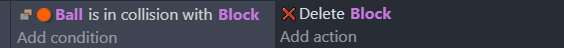 Comments should not paraphrase the events. For instance, "Delete the block when the ball collides it." is a useless comment for the following event: