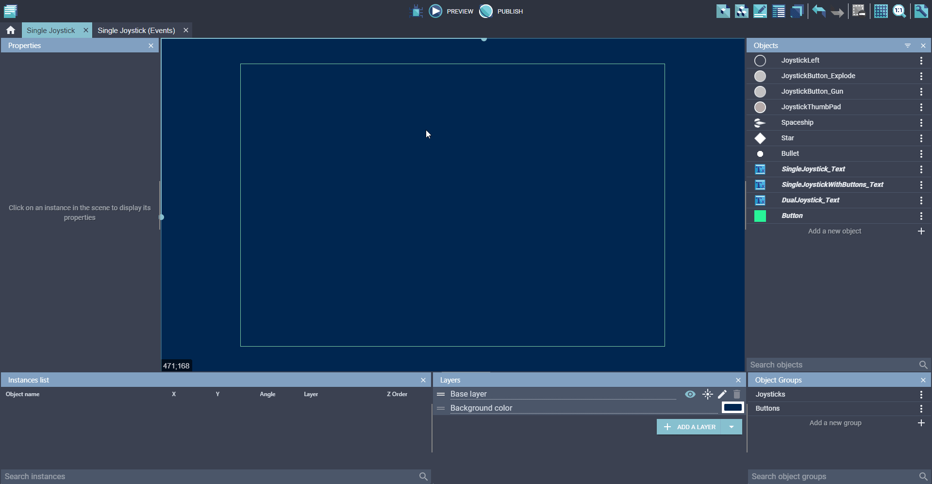 4) Add "Multitouch Joystick" behavior to the Joystick object.