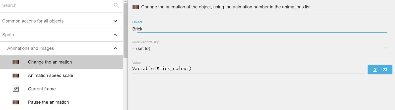 • Name this object Brick. Give it three separate animations using the brick-green.png, brick-red.png and brick-yellow.png files from your project folder. Name the animations accordingly.