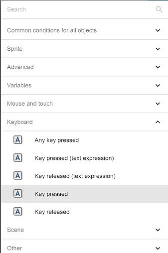 • In the Key field, type Left and click OK. This condition is true if the player presses the left arrow on the keyboard.